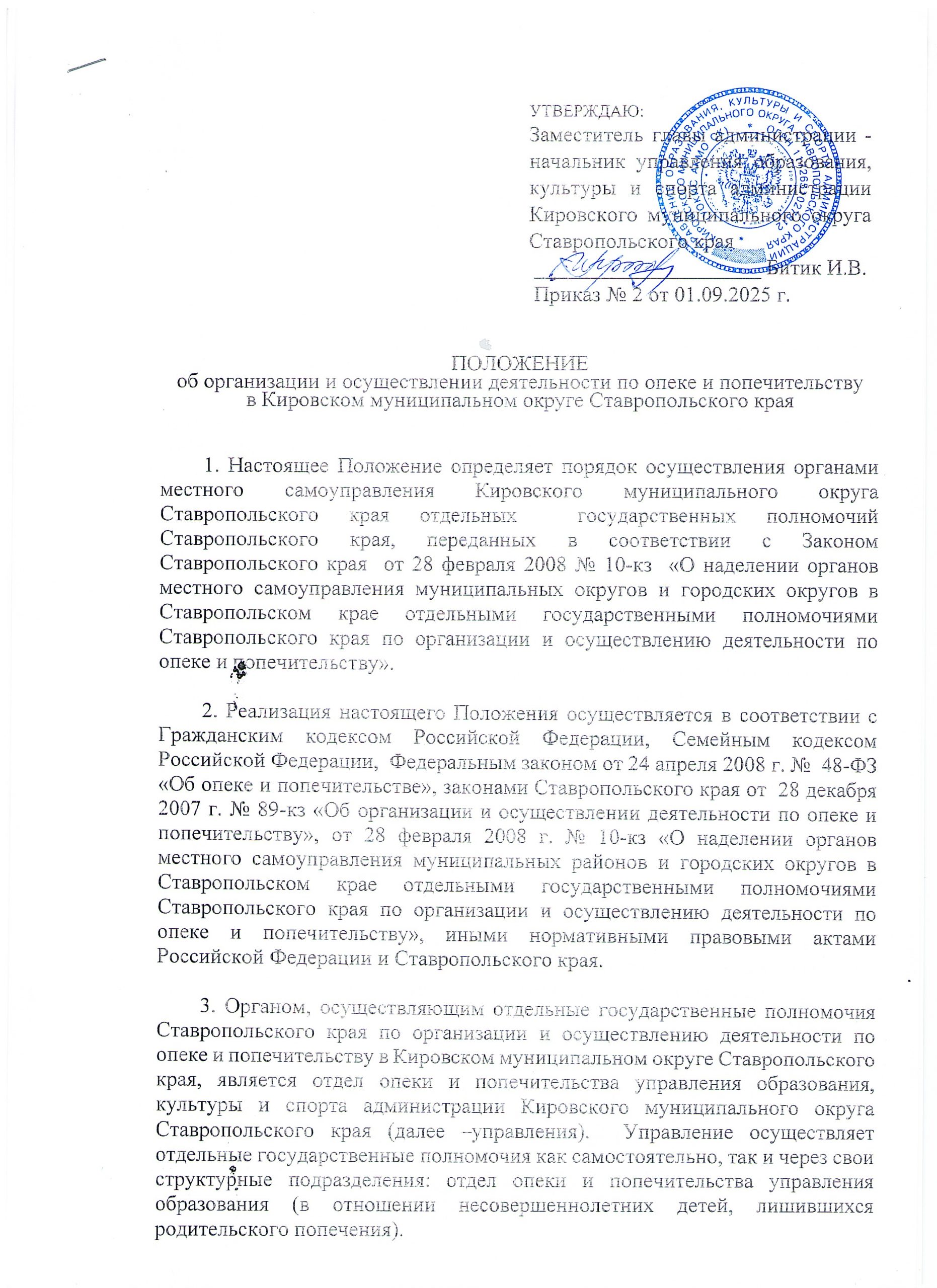 Отдел опеки и попечительства управления образования администрации Кировского муниципального округа Ставропольского края